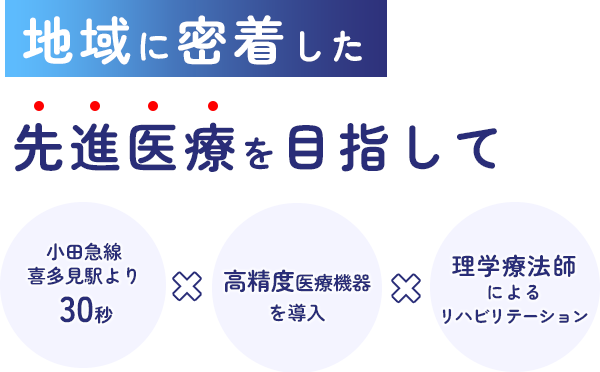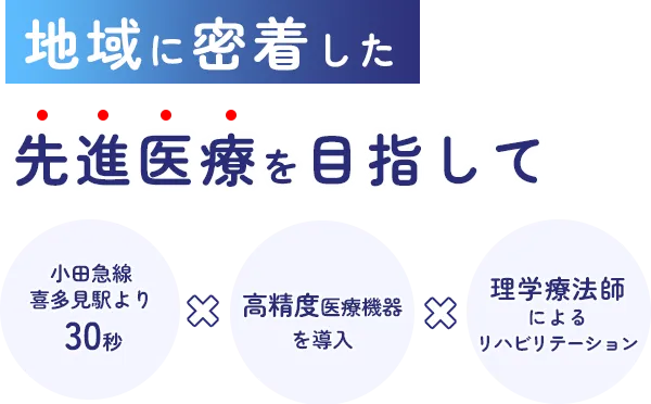 喜多見駅前の小泉ビルにある当院は、専門医が一丸となって、地域の皆さまにより良い診療を提供しています。